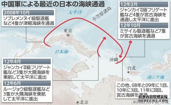 尹卓进一步阐述:中日之间在《危机管理机制》中提出的情况,是针对双方近海海域。例如围绕钓鱼岛争端,若双方要出动军舰到钓鱼岛周边海域,则需要通报对方。而中国海军通过宫古海峡,离钓鱼岛尚有很远的距离。宫古海峡是国际水道,而且是公海,最宽达200多公里。“日本12海里领海再宽也达不到这200公里的范围内。我们自由进出公海,走国际水道,跟日本有什么关系吗?没有任何关系。因此根本不需要向日本通报。”    资料图:日媒报道中国七艘军舰穿过宫古海峡。