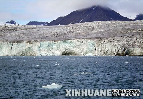 资料图片:这是位于北极附近的挪威斯瓦尔巴群岛的一条冰川(8月23日摄)。