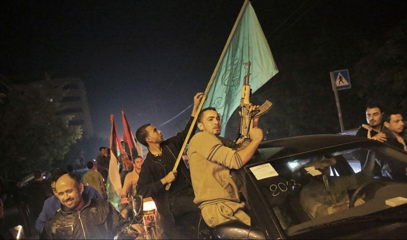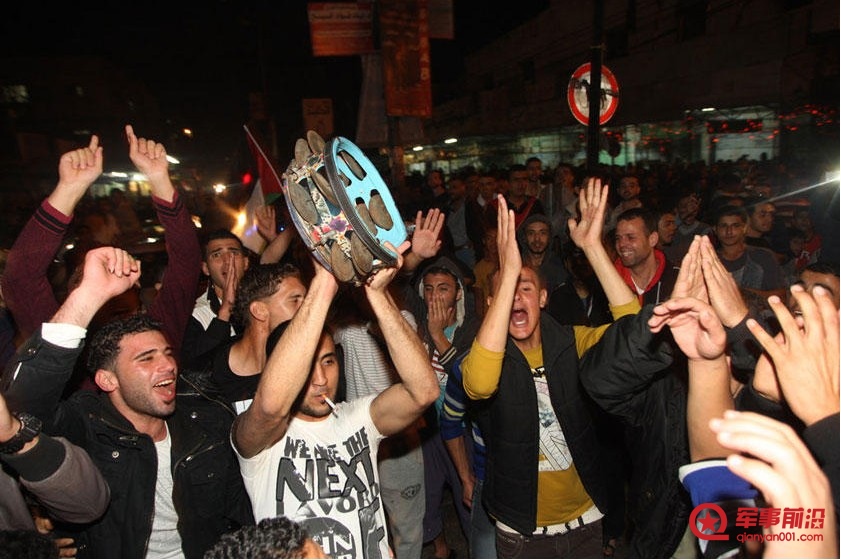 • 当地时间2012年11月21日晚上9点,以色列和巴勒斯坦实施停火。 当晚,数万名巴勒斯坦人走上加沙街头,以向空中开枪、跳舞和汽车鸣笛的方式 庆祝巴以停火协议生效,以及持续一周的战争结束。