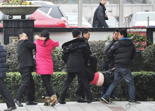 2月17日晚8点半,因高利贷债务纠纷,长沙富丽华酒店茶室发生命案,2死1伤,两名死者中枪身亡,死者王可军37岁,益阳沅江人,在长沙当保安。2月17日是正月初八,原本是打算去喝喜酒的王可军忽然接到了朋友的一个电话,让他帮忙追债,当晚在长沙富丽华酒店茶室被枪杀。另一名死者与王可军是老乡,都是被朋友叫去催债的。图为2月19日中午,长沙市八一路富丽华酒店门口,死者王某家属在酒店前讨要说法,随后被保安驱赶离开。