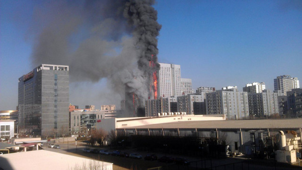 天津南开区一高层建筑突发大火(1)
