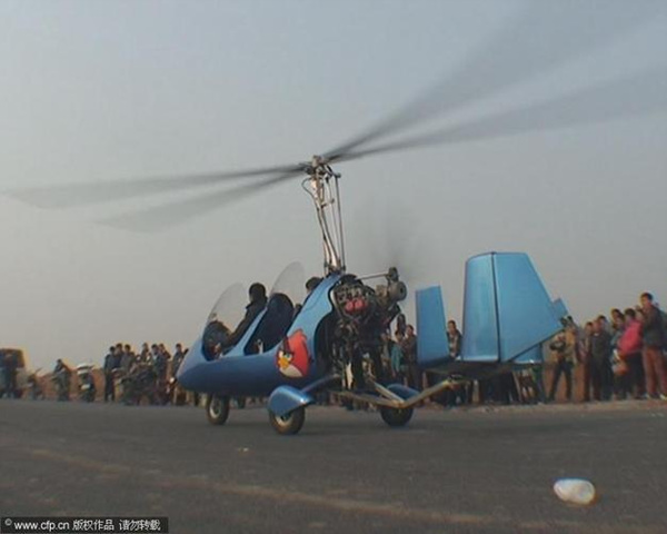 河南小伙开自造价值近百万飞机赴庙会(1)(3)