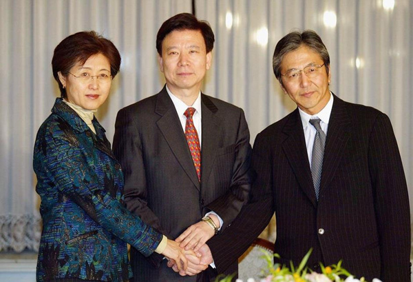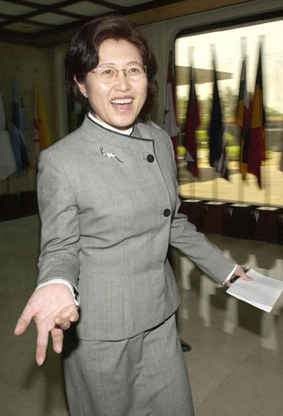 2003年12月28日,韩国汉城,中、韩、日三国外交部亚洲区负责人就朝鲜核能力问题在汉城举行“三方会议”。参加本次会议中方代表为中国外交部亚洲司司长傅莹(左)。