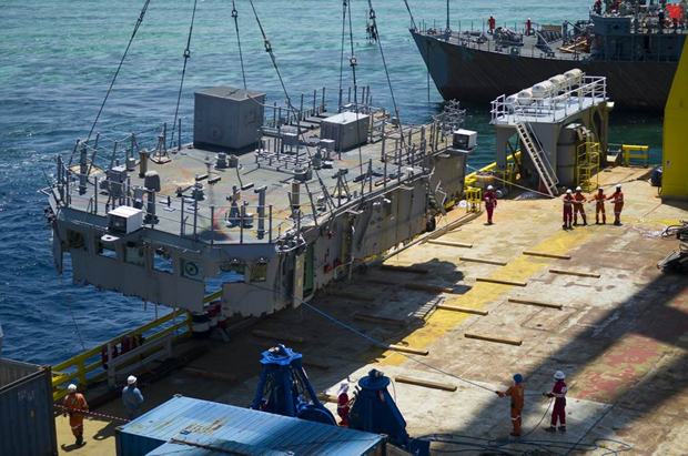 据美国海军网报道,当地时间3月2日,于1月17日在菲律宾图巴塔哈群礁的珊瑚礁(Tubbataha Reef)上发生搁浅的事故美国海军美国“护卫者”号(USS Guardian)扫雷舰正在进行上层建筑的拆除工作,美国海军和打捞队正在进行损害评估然后安全拆除,继续转移该艘船上的物资。美国海军正在与菲律宾方面积极合作,以把拆卸转移工作对珊瑚礁生态环境的破坏降到最小。