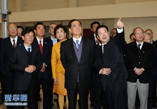 2月27日,中国国民党荣誉主席连战一行在中国航天员科研训练中心听取航天城相关人员的介绍。