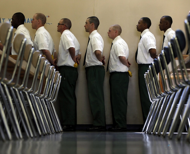 犯人排队吃中饭。