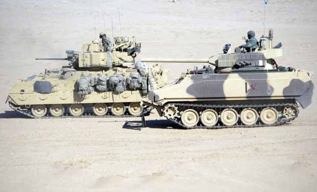 美国陆军M2A3新型战车群戈壁实战演练(1)(4)