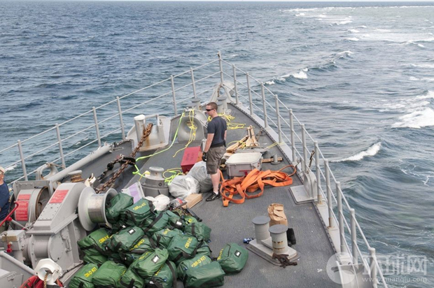 1月底,美国海军人员紧急转移护卫者号上的物资