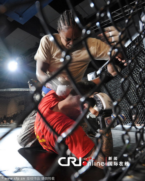 为了证明女性同样可以上前线参加战斗,一些美军女兵参加了“笼中格斗”比赛,与男兵进行激烈的对抗