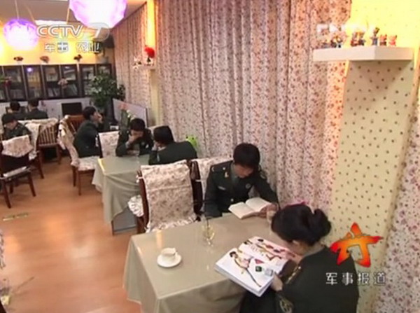 品着咖啡读着书 靓丽女兵的新潮生活(1)